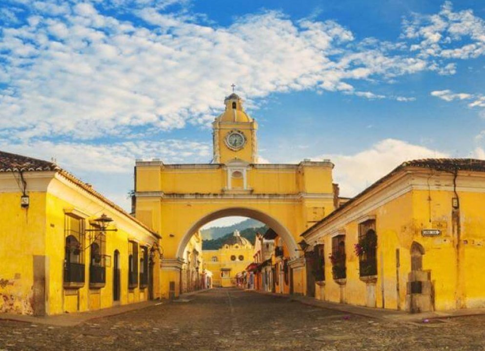 Es el ícono indiscutible de La Antigua Guatemala. Construido en el siglo XVII para permitir a las monjas de clausura cruzar la calle sin ser vistas, hoy es el punto más fotogénico de la ciudad. Su vibrante color amarillo, el reloj en la cima y el majestuoso Volcán de Agua enmarcado al fondo crean la postal perfecta que no puede faltar en tu visita.